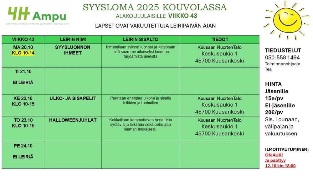 Alla olevan lomakkeen täyttämällä ilmoitat lapsen leiripäiville