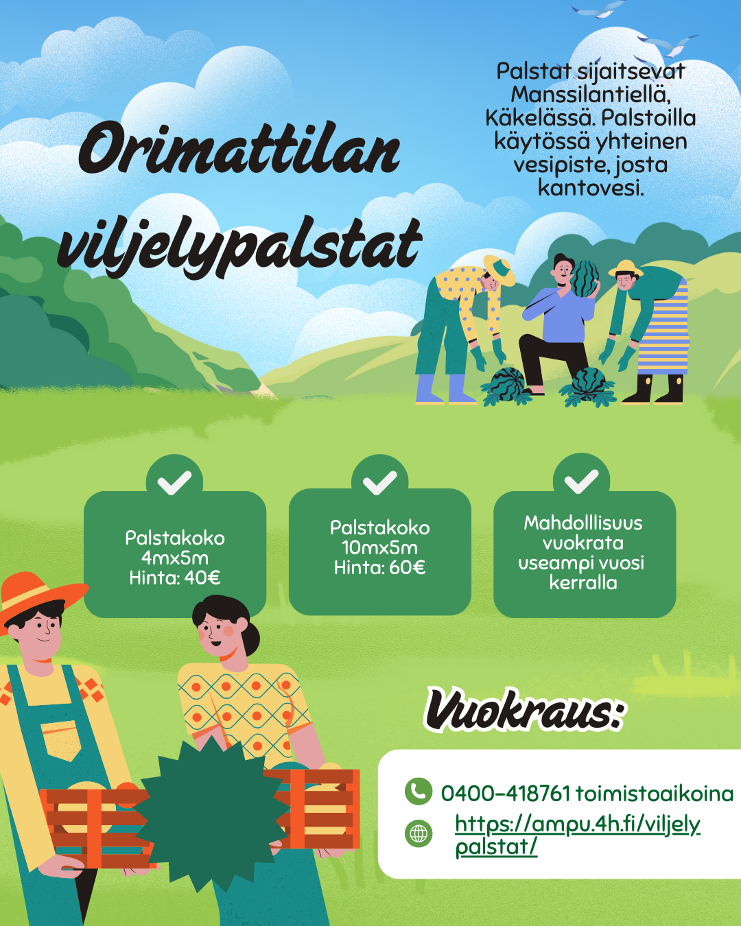 Orimattilan viljelypalstat vuokrattavana kesälle 2026!